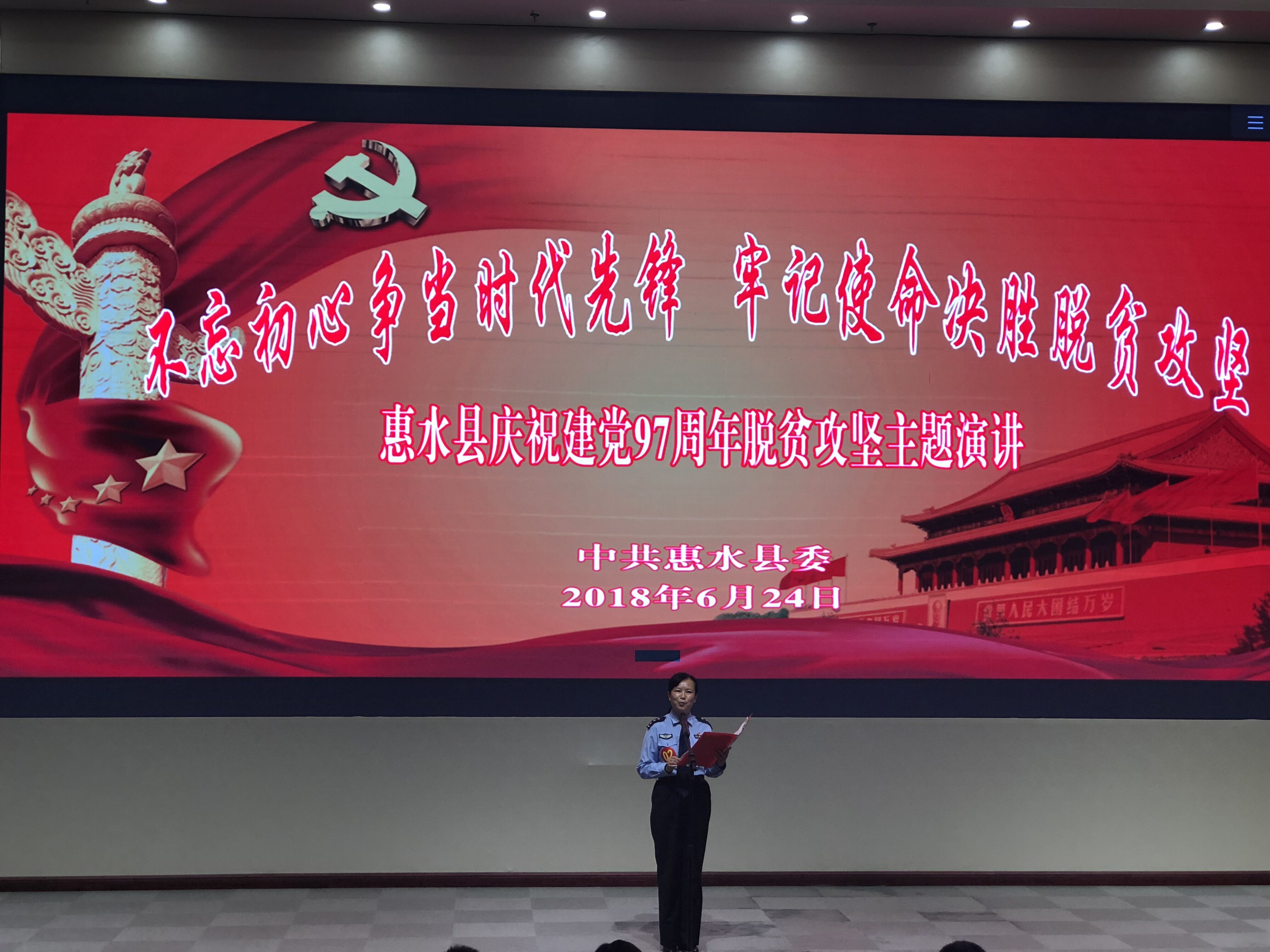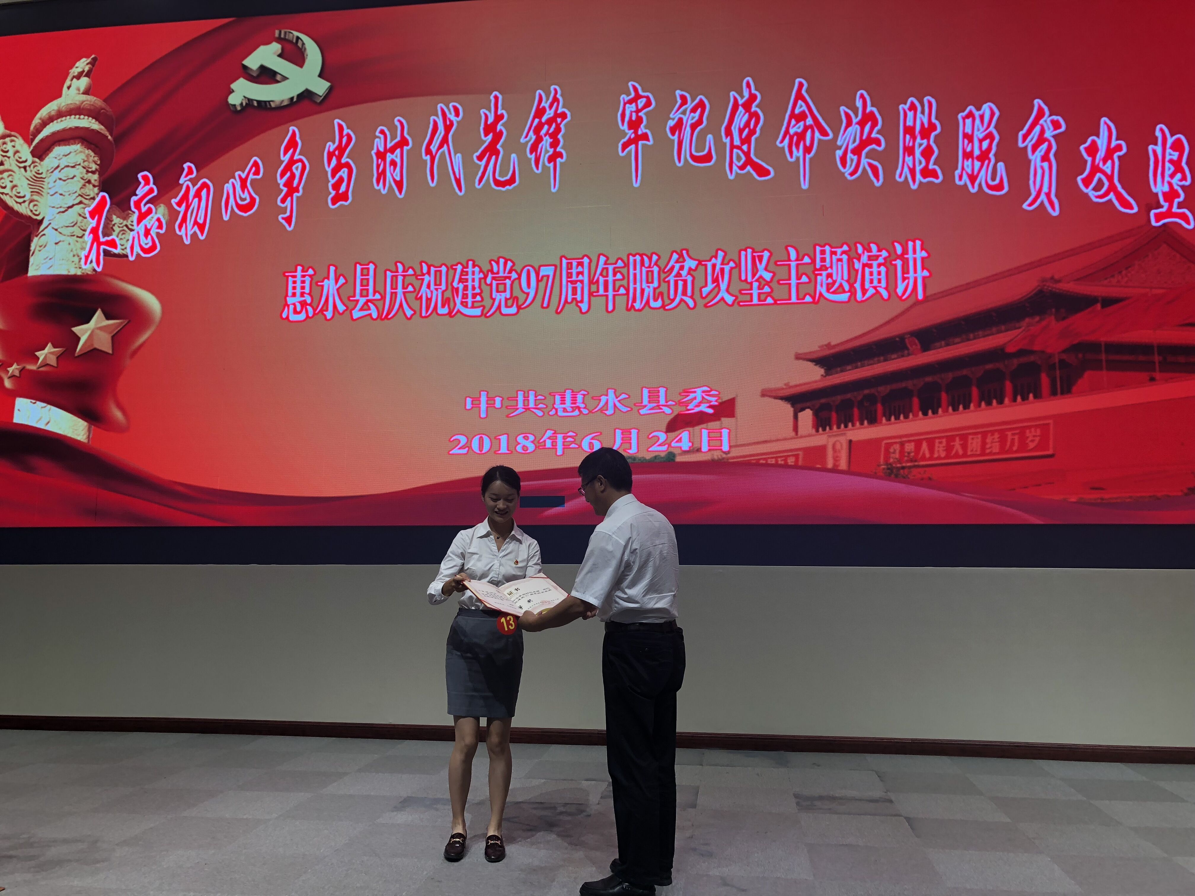 脱贫前沿驻村帮扶,基层一线聚力攻坚,一段段扶贫佳话娓娓道来——咬定贫困不放松,撸起袖子加油干,强烈的为民情怀激情豪迈,千万先锋抒写初心使命,万千力量汇聚时代洪流。6月24日,惠水县举行庆“七·一”脱贫攻坚主题演讲比赛,拉开了全县庆祝建党97周年系列活动的序幕。来自全县脱贫攻坚一线的党员干部,以自身实践为例,深情讲述脱贫攻坚的生动故事,恣意演绎砥砺前行的青春豪情。