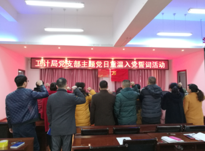 为进一步增强党支部的战斗力、凝聚力,激励党员坚定爱党、信党、跟党走的理想信念,根据《关于规范开展党支部主题党日的通知》(惠组通〔2017〕60号)文件要求,确保深入推进“两学一做”学习教育常态化制度化,12月4日上午,惠水县卫计局党支部组织全体党员在五楼会议室开展重温入党誓词活动。
